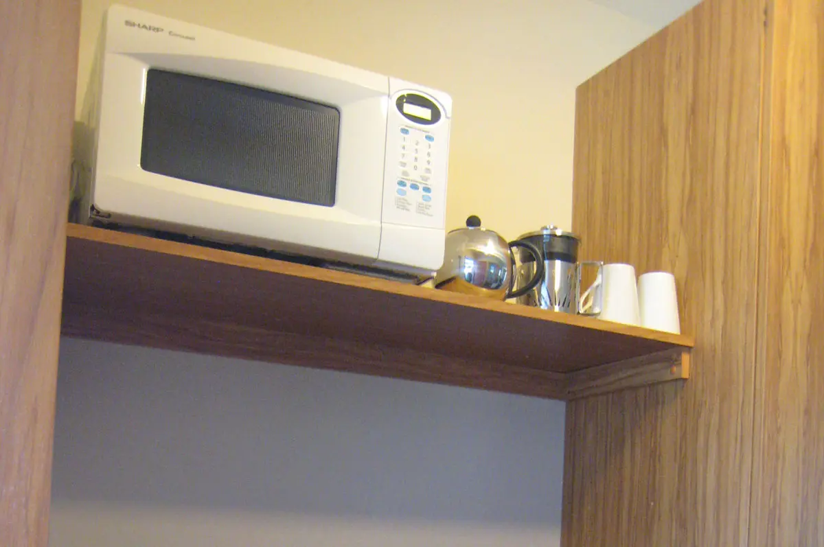 Relaxing, spacious studio with King bed, cooking facilities and sliding door onto the garden. The cooking facilities comprise a two plate ceramic hob and microwave oven. There is excellent lighting at the desk and by the armchairs for reading and relaxing. Free broadband wifi, LCD TV, Guest Select Sky, and DVD player with a great selection of DVDs. A choice of quality teas and coffees, including plunger coffee plus. Lovely new shower room, with quality amenities, heating and heated towel rails. Breakfast service, undercover parking.