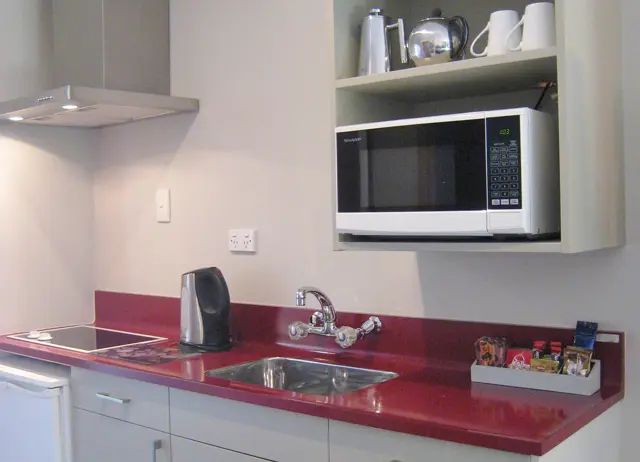 Beautifully renovated two bedroom unit with King bed in each bedroom and fold-out slatted sofabed in lounge. Free broadband wifi available. Spacious lounge/dining area opening onto deck patio. 42LCD TV, Guest Select Sky and DVD player with a second TV and DVD player in the main bedroom. A choice of quality teas and coffees, including plunger coffee. Lovely, spacious corner spa (shower over) in the bathroom, with quality amenities, heating and heated towel rail . Kitchen has ceramic hob, microwave oven and electric frypan. Breakfast service, undercover parking.